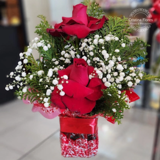 Composição: Média de 30 Rosas vermelhas contendo Gipsofila, Aspargo, Cetim para acabamentos com laço. Brinde: Buque... Ver completo