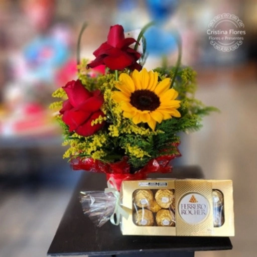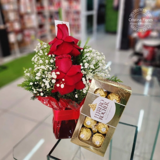 A intensidade das rosas vermelhas unida ao sabor inconfundível do Ferrero faz deste arranjo um dos favoritos de quem am... Ver completo