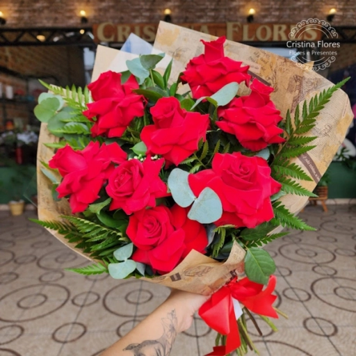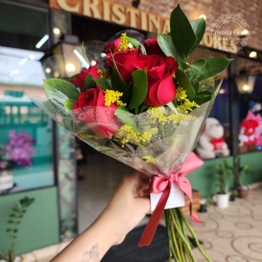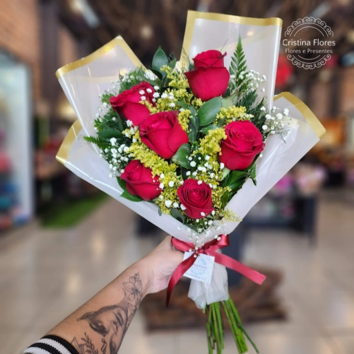 - 7 rosas vermelhas.