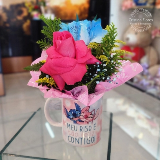 Duas rosas vermelhas vibrantes florescem dentro da caneca do casal mais amado do mundo, trazendo um toque de magia e nos... Ver completo