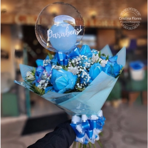 Duas rosas azuis que carregam a magia do inesperado, acompanhadas de um balão bubble que dá aquele toque de encantamen... Ver completo
