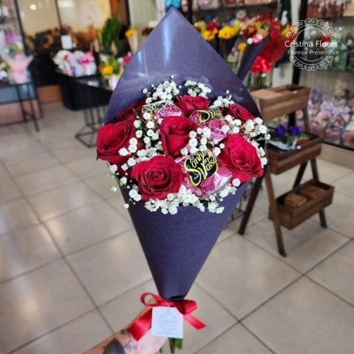 Um buquê que une beleza, sabor e emoção 11 rosas nacionais em dois tons de rosa;